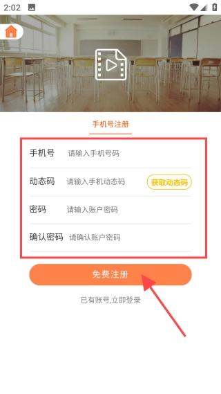 进入【我的】页面,填写相关信息后,点击【免费注册】按钮。
