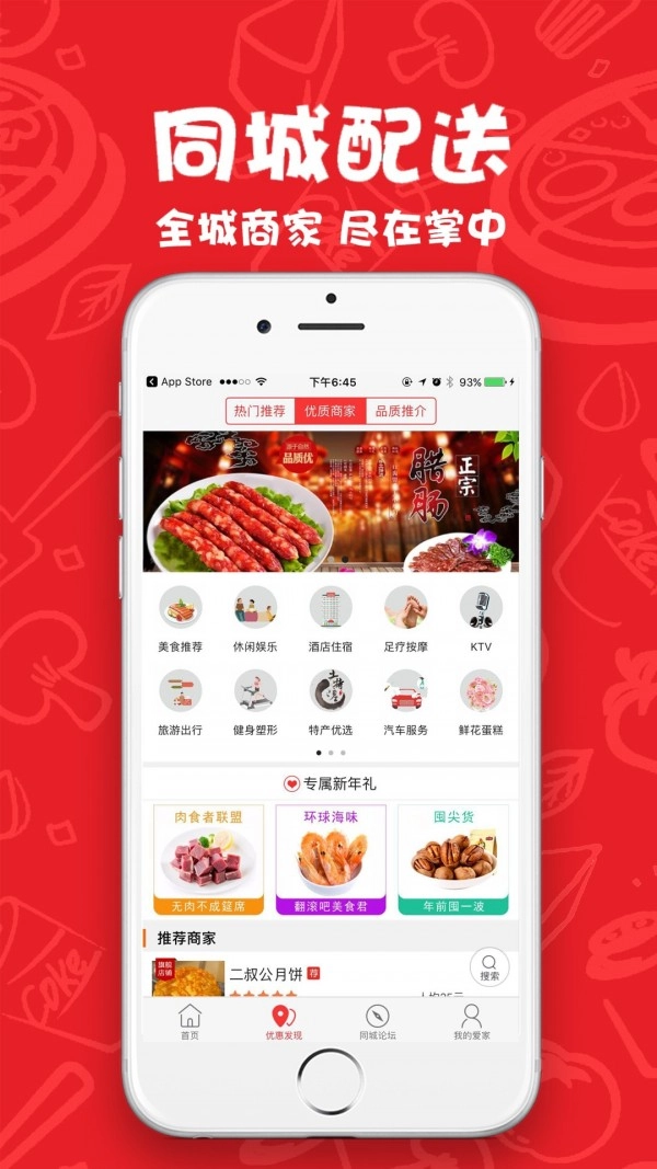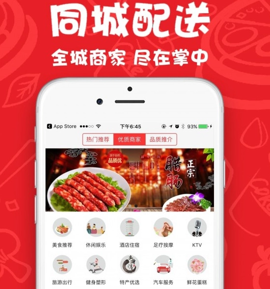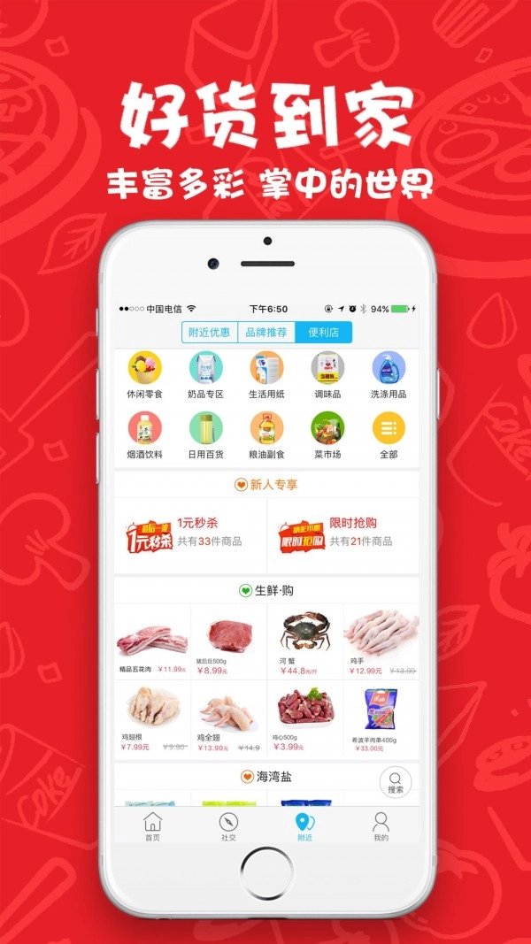 包含六大板块,具体为果蔬、美食外卖、服装鞋帽、电子产品、便民资讯以及同城交友。