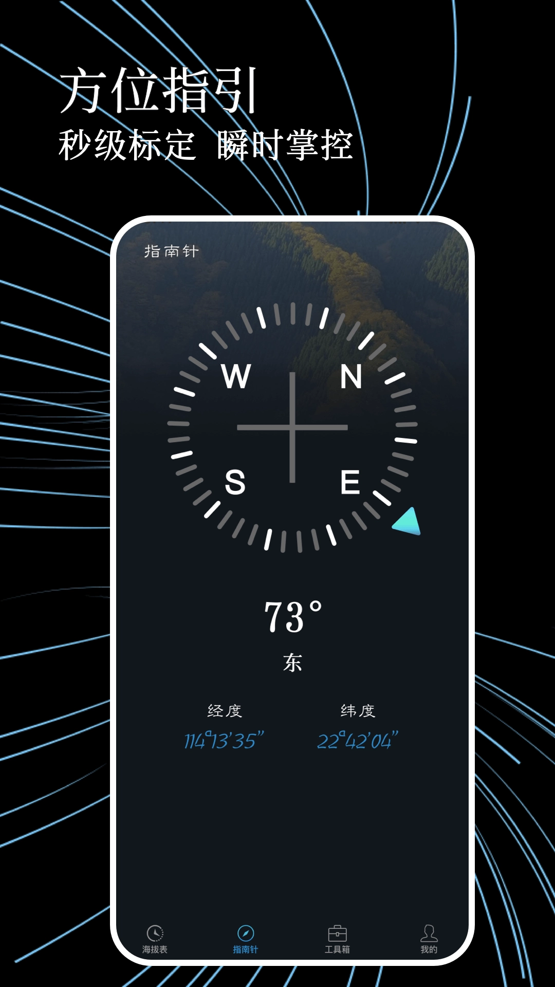 户外探索时,指南针是必不可少的小工具,能帮助人们避免在野外迷路;这款软件里也配备了指南针功能,以备不时之需。