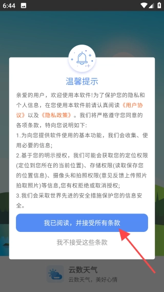 安装后,阅读同意“温馨提示”。