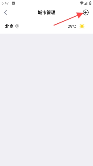 点击左上角的【+】图标,进入【城市管理】页面后,再点击【⊕】图标。