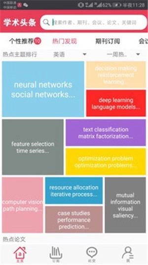 2.个性定制服务。借助大数据技术与用户个人定制需求相结合,用户能够在7大门类、4000多个主题里挑选并定制自己感兴趣的学科领域,系统会实时向用户推送与其定制内容相关的文献资料、期刊出版物以及感兴趣的学术会议信息。
