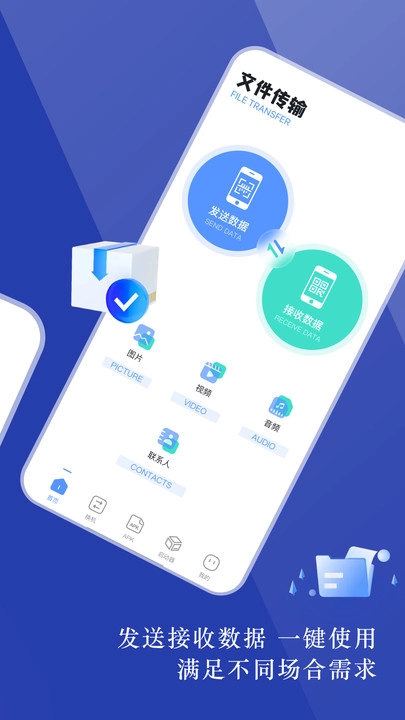 支持多种文件类型传输,包括照片、视频、音乐、文档、APK等各类文件。