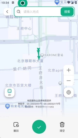 在地图测量时,既可以通过输入地理位置来添加标记,也能直接在地图上手动标记;标记完成后,点击下方的对勾按钮,系统就会自动进行智能化的距离测量。