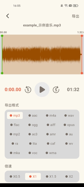 4、倍速设置:在导出音频的过程中,能够对其倍速进行调节,以此满足多样化的使用需求。