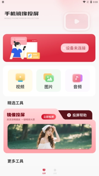 按照提示操作就行,首页推送的视频、图片和音频的投屏操作等都包含在内。