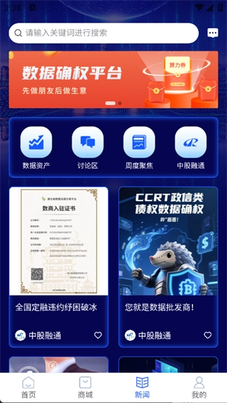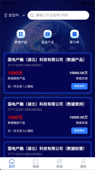 在首页就能看到数据产品、自选产品以及算力券相关功能。