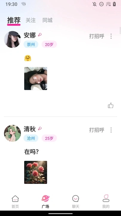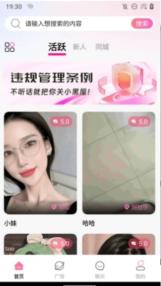 进入软件平台后,首页展示了多种交友方式,操作简单便捷。