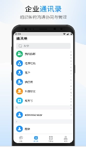 提供即时消息服务,配备多种高效沟通渠道,消息形式支持文字、图片、图文、视频(含拍摄视频)等多种类型,同时具备组织架构管理功能。