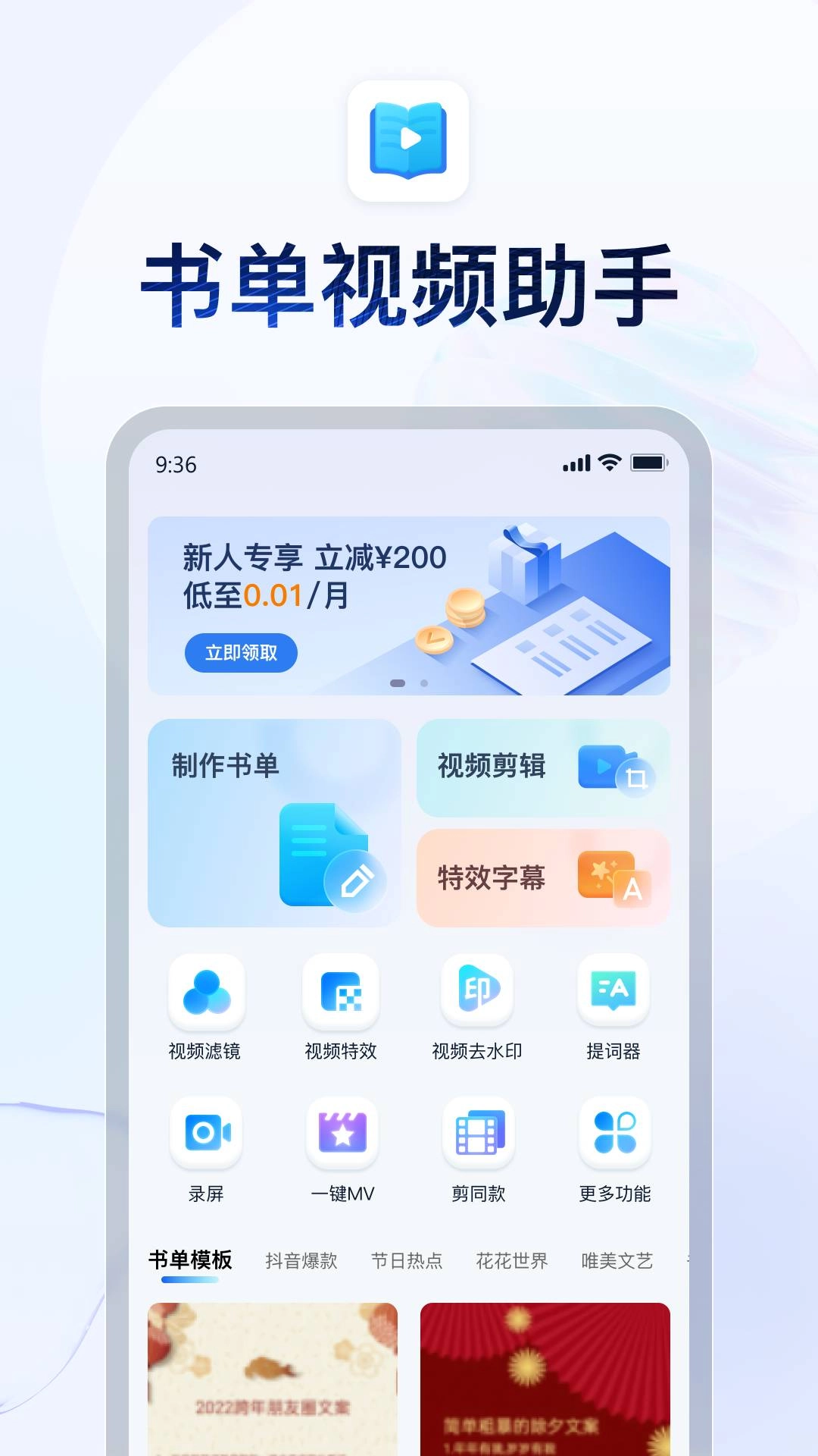 书单视频助手正版是上海灵豹信息科技有限公司研发的安卓端多功能视频编辑应用,聚焦书单视频创作与短视频制作需求,整合模板化创作、智能语音配音、AI抠像、多段拼贴等核心功能,适配抖音、快手等主流平台尺寸规格,可满足个人分享、企业宣传、媒体运营、书籍推广等多样化场景使用,以低操作门槛与专业级呈现效果,成为移动端视频创作领域的热门选择。