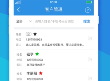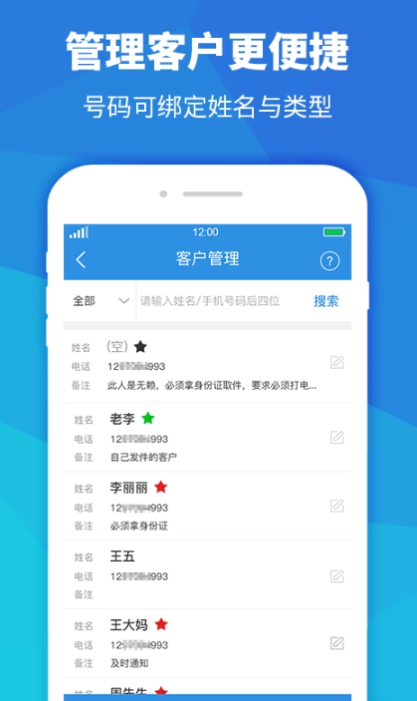 1.支持批量导入号码,便于快递员开展群发短信与群呼操作。