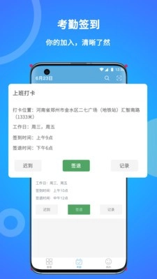 办公考勤功能:可满足员工在指定场所、规定时段进行上班签到的使用需求