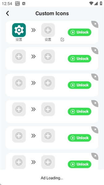 在“Custom Icons”界面中,能够选择解锁各类应用的自定义图标样式。