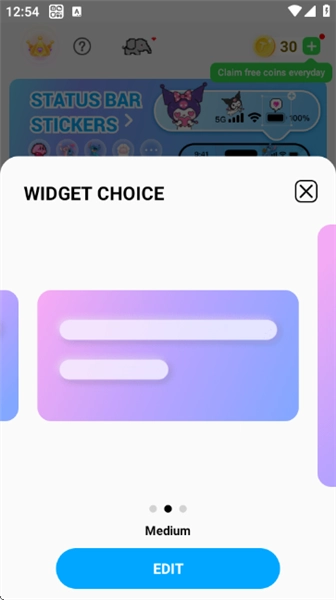 点击后选择小部件尺寸并进行编辑。