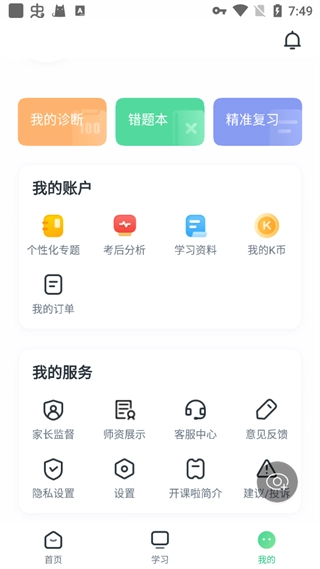 我们提供诊断分析、错题整理等学习辅助工具,以及家长监督、师资介绍等服务模块,可实现学习体验的个性化定制,助力解决学习问题,并对学习全流程进行有效管理。