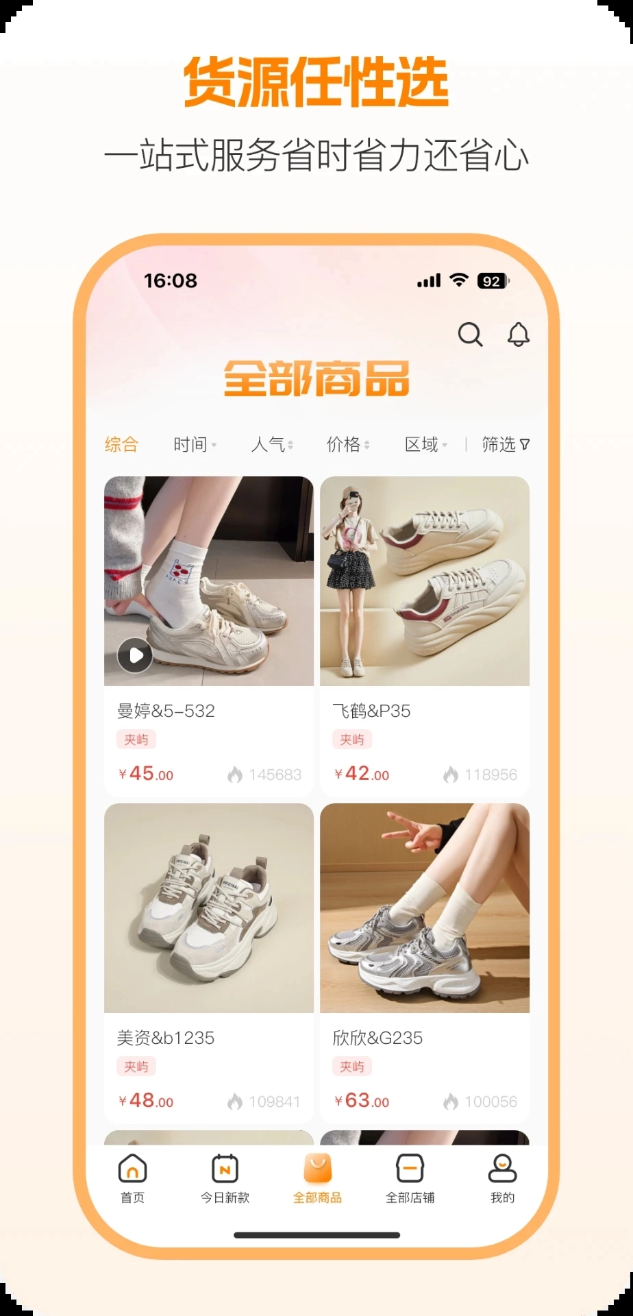 在全部商品页面里,你能随时浏览所有商品,方便快捷地下单购买。