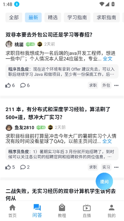 当用户切换到“问答”板块后,就能发起提问或是回答问题,以此和其他人进行技术层面的交流互动。