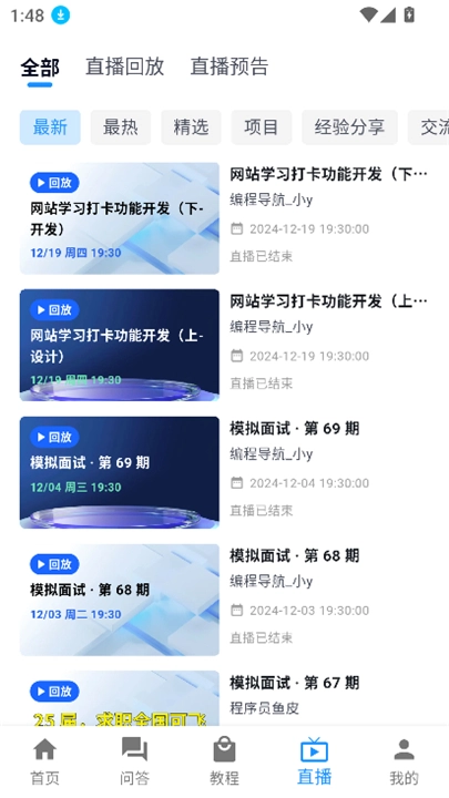 5. 直播教学活动:平台不定期推出优质的编程直播课程,邀请行业内专业讲师进行在线授课,并提供实时的互动答疑服务。