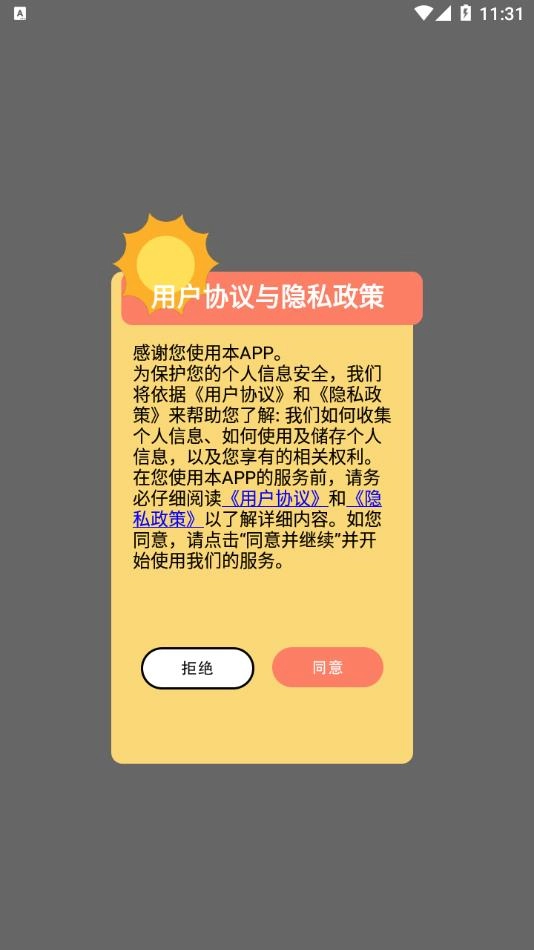 安装软件后打开,点击同意用户协议与隐私政策。