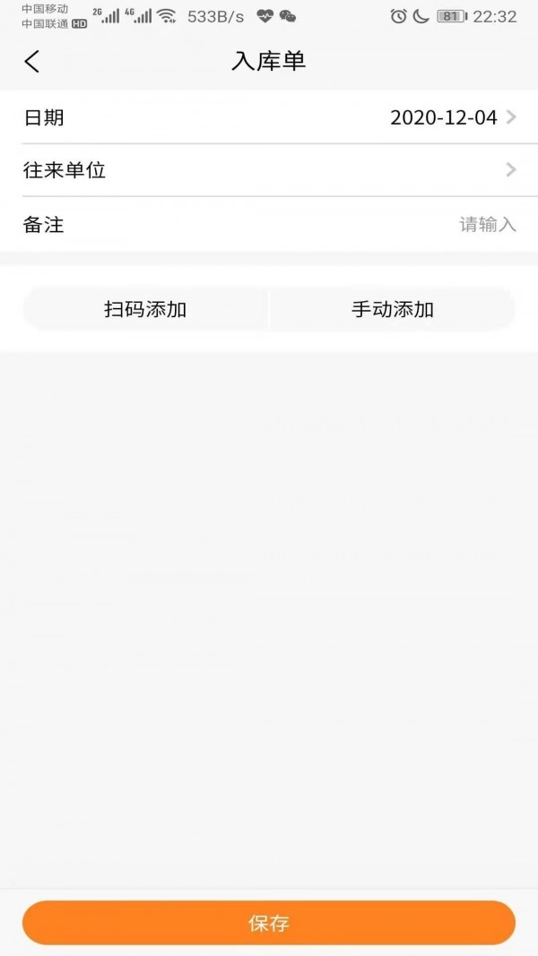 3、出库单与入库单均可通过扫码添加,扫码操作即可完成信息录入;