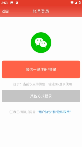 安装后,授权打开,使用微信注册登录账号。