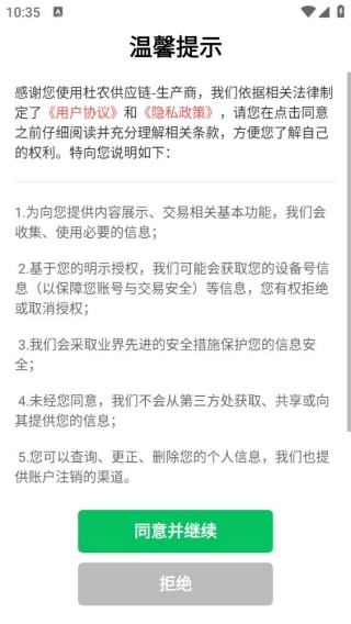 安装软件后启动程序,会弹出温馨提示窗口,仔细阅读提示内容后,点击“同意并继续”按钮即可。