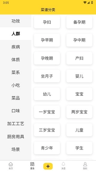 按人群划分:涵盖了适合孕妇、婴儿、青少年等各类人群的食谱。