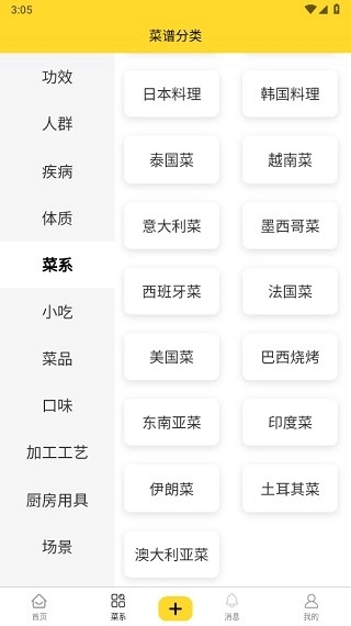 按菜系进行分类:涵盖全球范围内的各类菜系,像中国八大菜系、日韩料理、墨西哥菜、泰国菜等都包含在内。
