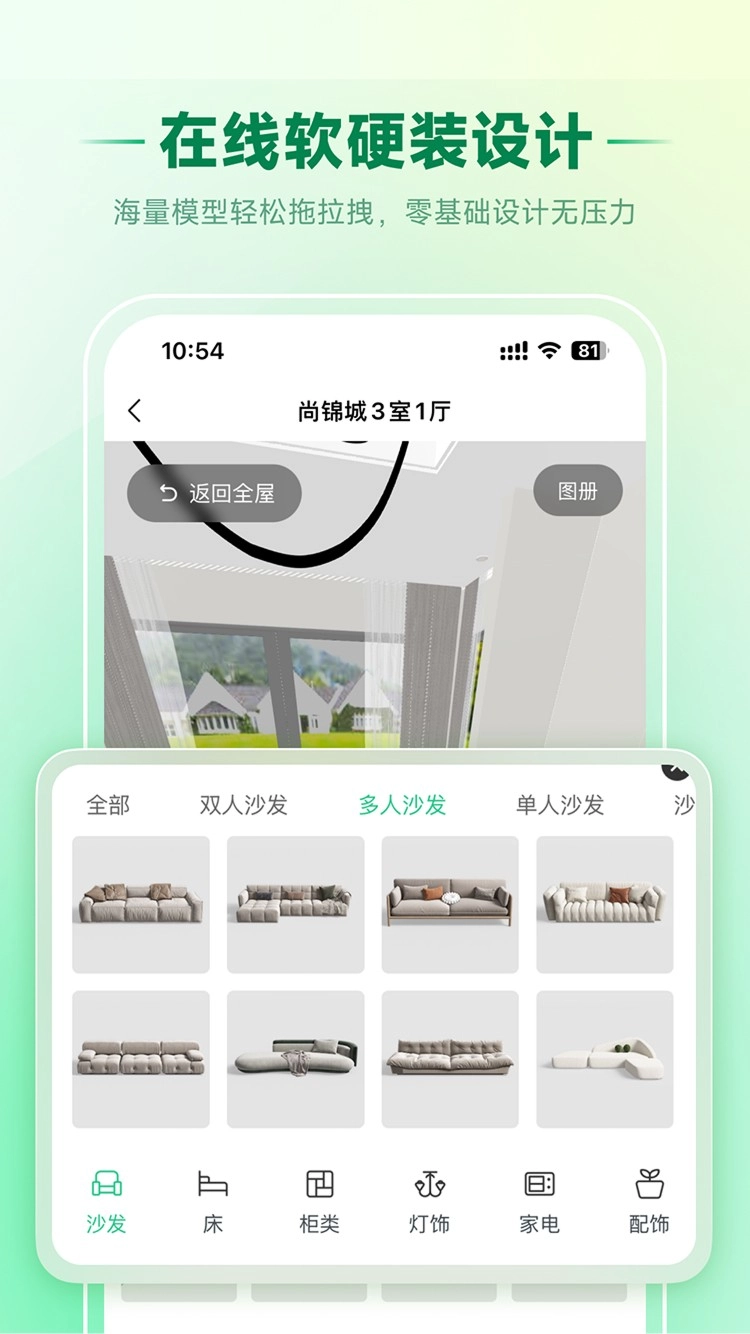 海量沙发、灯饰、家电等软硬装模型,覆盖多种风格,满足多样化搭配需求。