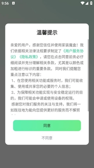 软件安装完成后打开,会弹出温馨提示窗口,仔细阅读内容后,点击“同意”按钮即可。