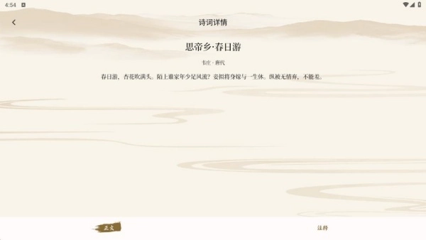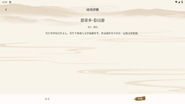 切换到注释页面,我们能了解诗词的更深入介绍。