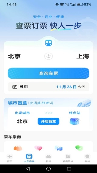 在火车高铁页面,同样可以切换城市与出行时间,进而搜索火车票相关信息。