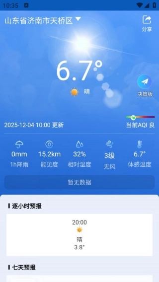 进入平台的天气界面后,就能直接查看当前所在地区的天气状况了。