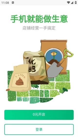 进入引导界面后,能看到“0元开店”和“登录”这两个按钮,操作方式都是直接点击。