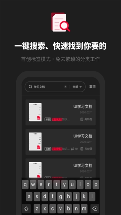 通过标签或标题一键搜索,即可快速定位目标文档,让查找过程轻松便捷,文档管理也更显有序高效,同时保障使用安全。