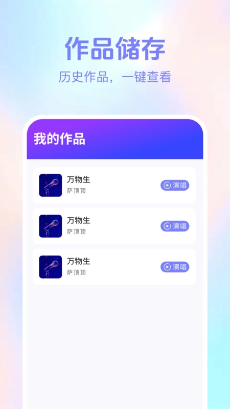 作品会自动归档,演唱结束确认保存后,系统会自动进行整理,从此不用再费力寻找之前的歌曲,既方便又省心。