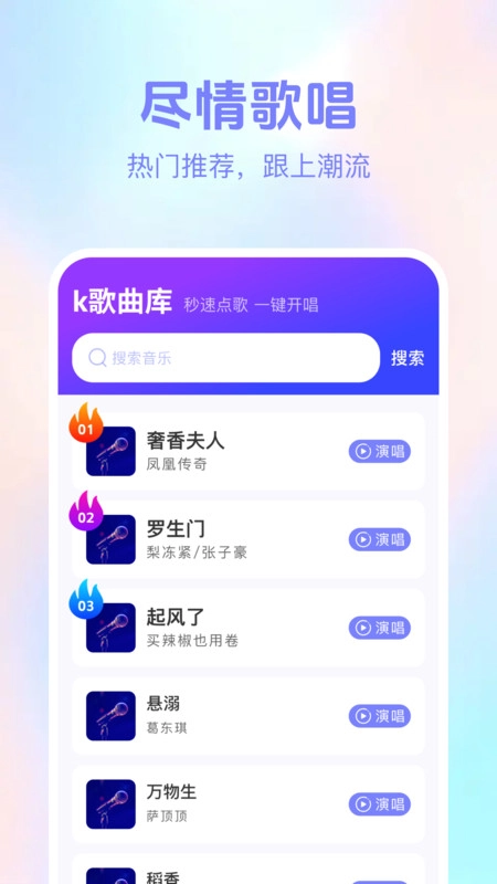 歌曲资源丰富,各种热门歌曲应有尽有,不管是流行、摇滚还是民谣,都能找到适合自己的歌来唱。