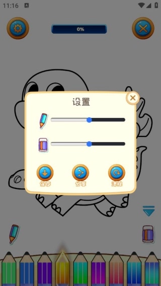 在涂色界面里,有多样的画笔颜色可供挑选,便于进行个性化创作。
