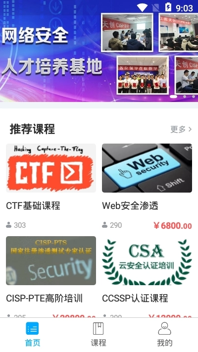 天创云课堂汇聚了多门实用的网络安全培训课程,更有多位行业大咖在线提供专业辅导,搭配多个实训平台支持在线实操练习。选择天创培训,我们将为您的网络安全学习之路全力助力!