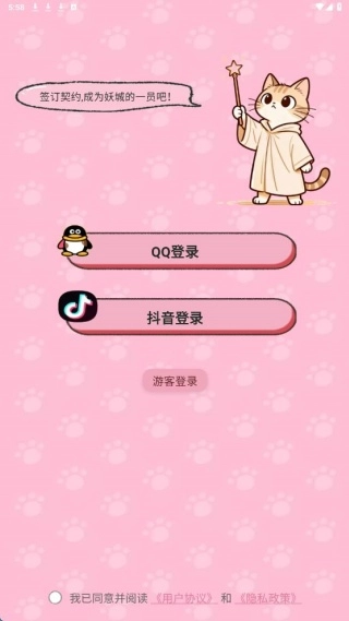 进入安装后,此页面仅提供QQ、抖音登录方式以及游客模式。