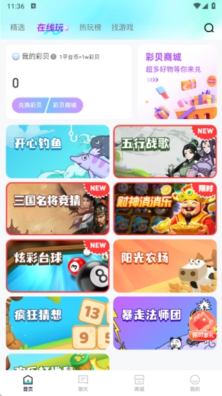在在线玩的页面里,既能了解各类可试玩的游戏,也能全面知晓彩贝商城的相关信息。