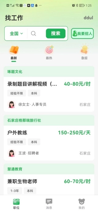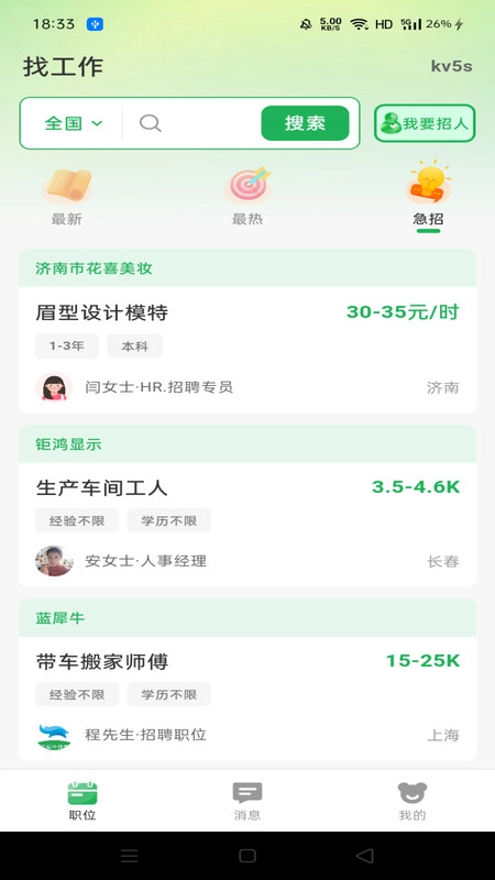在职位页面里,能看到最新、最热以及急招的岗位信息,方便你了解各类岗位的具体内容。