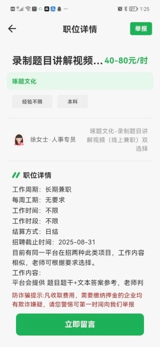 可以直接和招工方沟通,确认薪资待遇和具体工作内容,交流过程很顺畅,这样就避开了之前找兼职时遇到的信息不符的问题。