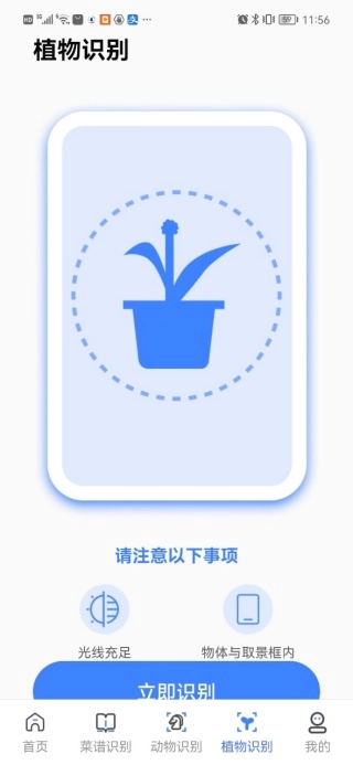 在植物识别页面点击“立即识别”按钮,就能快速识别出植物,同时获取相关的知识内容。