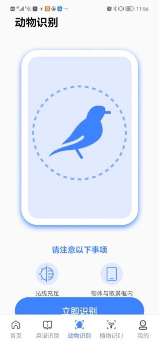 在动物识别页面点击“立即识别”按钮,就能迅速知晓该动物的各项特性。
