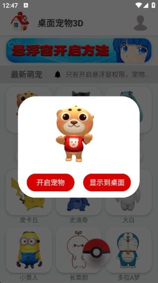 为用户提供了丰富多样的桌面宠物选择,这些宠物形象均经过精心设计,采用3D形式呈现,让它们仿佛真的在手机桌面上灵动活动。