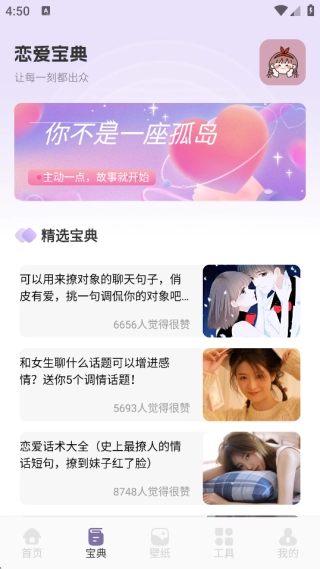 工具界面,支持恋爱表情包以及情侣头像选择等。