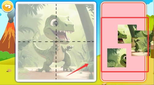 趣味小游戏集合,包含拼图、记忆配对、涂色等简单玩法。这些小游戏都融入了恐龙元素,在娱乐中巩固学习内容。