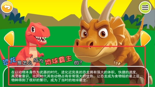 这套知识体系遵循寓教于乐的理念,在游戏进程里巧妙融入恐龙科普知识,涵盖恐龙的名称、外形特征、生活习性等基础内容,借助互动化的形式,助力孩子更轻松地掌握并记住这些知识。