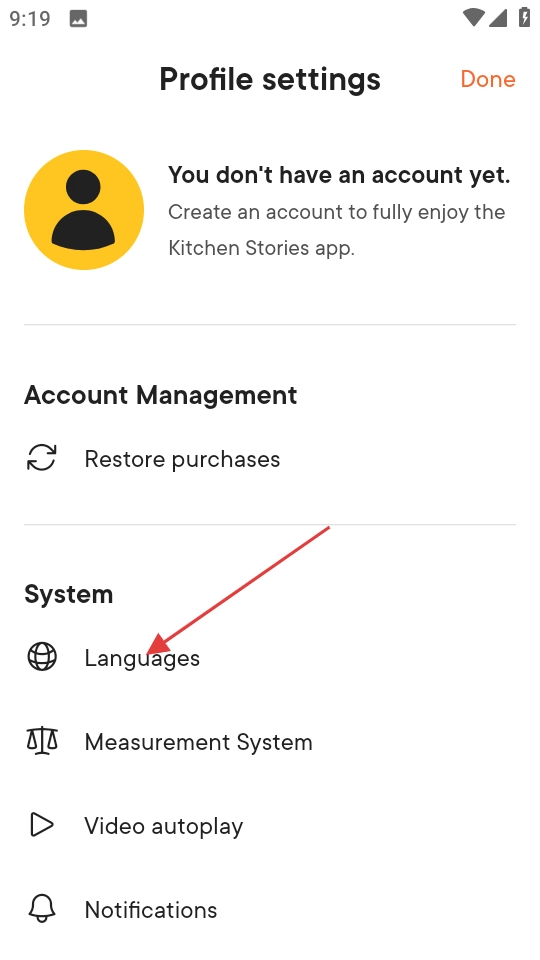 在个人资料设置页面,点击语言选项,即可进入语言选择页面。